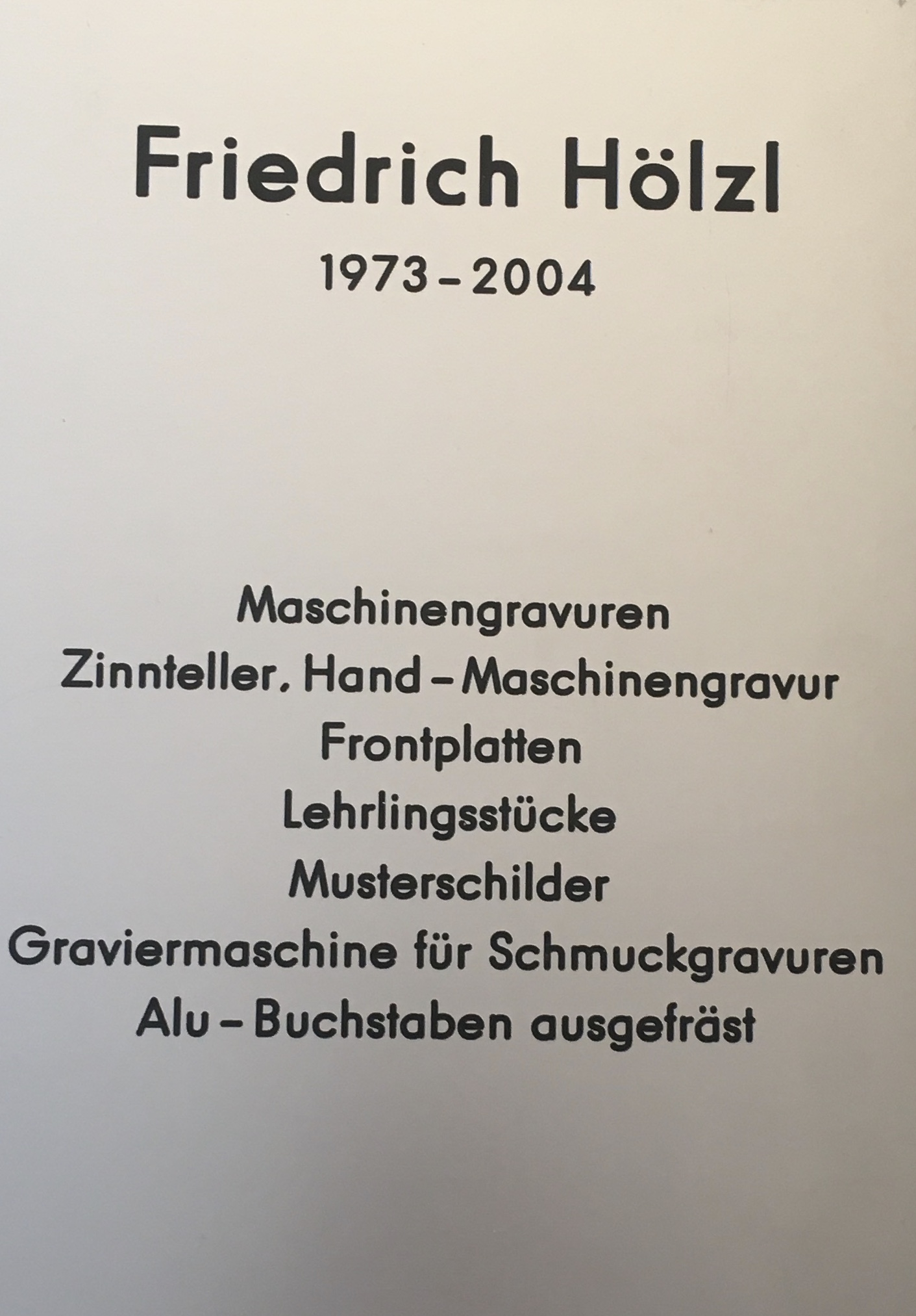 Die Traditionsfirma Hölzl – Gravuren und Schilder - und die hightechorientierte Laser Point wurden im Jahr 2005 zur Hölzl Gravurtec zusammengeführt. Wir sind ein Familienbetrieb, der bereits seit 122 Jahren durch Professionalität und persönlichen Kontakt überzeugt.